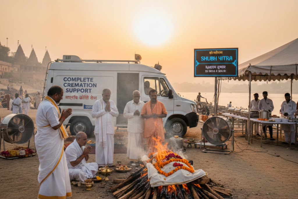 In difficult times, we handle everything — Ambulance, Pandit Ji, Wood, Workers, and complete funeral arrangements with dignity and care.